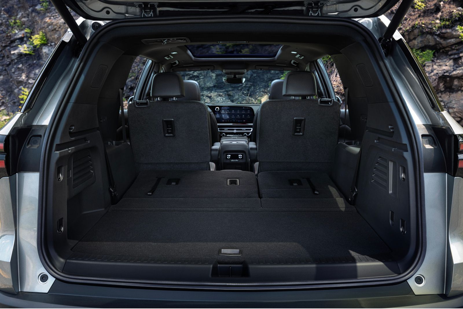 Derrière la troisième rangée, le Traverse propose un volume généreux pour les besoins quotidiens comme pour les voyages prolongés. Avec tous les sièges relevés, le coffre peut loger les valises familiales ou l’équipement de plein air pour explorer la région du Bas-Saint-Laurent. Pour plus d’espace, la banquette arrière divisée 60/40 se rabat afin d’augmenter le volume utilitaire.